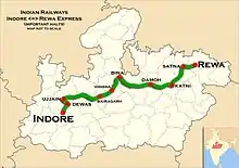 Rewa railway station is connected to Satna through the 50 km Satna-Rewa branch line. Satna falls on the Howrah-Allahabad-Mumbai line.