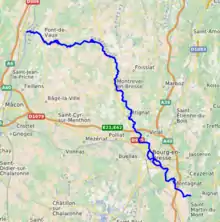 The Reyssouze (French pronunciation: [ʁɛsuz]) is a river in the Ain department in eastern France. It is a left tributary of the Saône, which it joins near Pont-de-Vaux. It is 75.1 km (46.7 mi) long.[1] Its source is in Journans, in the Bresse region. The Reyssouze flows generally northwest through the following communes: Montagnat, Bourg-en-Bresse, Attignat, Montrevel-en-Bresse and Pont-de-Vaux.