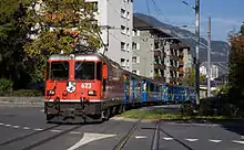 A short section of the line runs along the streets of Chur and is known as the Chur stadtbahn ('town railway'). In Chur, the line starts on Bahnhofplatz, in front of the main railway station, where that station's platforms for the Arosabahn are, though there is a second stop in Chur only 760 metres from the main station.