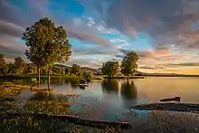 The Rhine delta of Lake Constance is the river delta on the southeastern shore of Lake Constance, which the Rhine (also called Alpine Rhine (Alpenrhein)) has formed in a former sea area. It lies mostly in the Austrian province of Vorarlberg, smaller areas are in the Swiss canton of St. Gallen. The two peninsulas in the lake are called Rheinspitz (west) and Rohrspitz (east).[2]