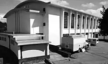 Occupying a position high in the hills above the Salisbury racecourse, the Pockets Hill television station was built just a few metres away from its original 'Alexandra Palace-style' transmitter mast. This was later replaced by a much taller, guyed structure. The HQ of the Rhodesian Broadcast Corporation occupied the nextdoor building.