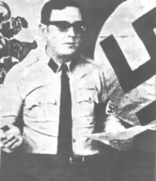 The Rhodesian White People's Party (RWPP) was a Rhodesian neo-Nazi political party led by Ken Rodger. This movement was founded in Bulawayo on January 30, 1976, its initial goal was to oppose communism,[1] but it mainly inspired the American Nazi Party and later with it the National Socialist White People's Party.[2] It was outlawed in November 1976 by the government of Ian Smith for anti-Semitic incidents by US citizens who were members of the party against the Bulawayo Hebrew Congregation, among the expelled citizens is the neo-Nazi Harold Covington.[3][4] This political party was the only one of the World Union of National Socialists that was active in Africa.[5]