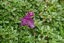 Rhododendron keleticum (独龙杜鹃) is a species of flowering plant in the family Ericaceae,[1] native to southeast Xizang and northwest Yunnan, China, as well as Myanmar. It grows at altitudes of 3,000–3,900 m (9,800–12,800 ft). It is a dwarf evergreen shrub growing to 5–30 cm (2.0–11.8 in) in height, forming either a mound or a mat of vegetation.[2] It has leathery leaves, elliptic-lanceolate, elliptic, or ovate in shape, 0.6–2 by 0.3–1 cm in size. The flowers are pale purplish red or green tinged with red.