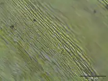Rhynchostegium are small to large mosses that form either loose tuft or extensive mats on the substrate, with irregular or regular branching.[1][3] The younger plants are generally deep green or light green; aging plants could become whitish, brownish, or paler green.[1][3] Stems are creeping and lack hyaloderm, with acute to acuminate pseudoparaphyllia.[3] Stem leaves are erectopatent or erect.[1][3] Branch leaves are similar in morphology to stem leaves but smaller and sometimes narrower.[3] Leaves are commonly straightly to homomallously arranged; subimbricate, subcomplanate, or complanate arrangement are sometimes seen, especially in branch leaves.[1] Leaf base, decurrent or not, varies from ovate to ovate-cordate, occasionally lanceolate, and the narrowing from gradual to abrupt, towards a short- or long-acuminate apex, where sometimes a differentiated long acumen or apiculus is present.[1] The leaves have a single costa that generally smoothly ends 35-75% up the leaf, and more often in branch leaves in an abaxial spine.[1] Leaf surfaces vary from flat to slightly concave and not to strongly longitudinally plicate, with little to some pores and linear laminal cells.[1][3] Leaf margins are serrate to serrulate.[1][3] Auxillary hairs constitute of 3-7 cells,[3] with 1-3 upper cells.[1] Alar cells are slightly enlarged, and either undifferentiated or quadrate to elongate-rectangular.[1][3]