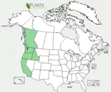 It is native to the western United States and Canada. In western British Columbia,[11] Washington, and Oregon, it is distributed widely in the moist regions west of the Cascades.[12] In California it is restricted to areas near the coast, and can be found as far south as Santa Barbara County.[13] Although its conservation status is secure across the rest of its range, in Idaho it is critically imperiled and is found only rarely in Bonner, Kootenai, Benewah, and Adams counties.[14][15]