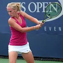 The biggest win of her career came at the 2012 Gastein Ladies where she beat top-seeded Julia Görges.[6] In a 2016 Fed Cup World Group tie, she defeated Svetlana Kuznetsova. The match lasted exactly four hours, the longest match in the history of Fed Cup.[7]