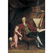 From India he allegedly brought back one of the largest fortunes ever accumulated. The phrase "Fetch more curricles" is associated with him. In 1781 he bought the estate of Stansted Park in Sussex from the trustees of the Earl of Halifax for 102,500 and subsequently added to his possessions in that county. He enlarged and remodelled Stansted House in a style of expense which contributed to exhaust the oriental treasures by which it was supplied.' As architects, Bonomi and James Wyatt were employed on the work for five years, while Capability Brown laid out the grounds. In 1781 Barwell was returned as tory M.P. for Helston, in 1784 for St Ives, and in 1790 and 1796 for Winchelsea. On 24 June 1785 he also married his second wife Catherine Coffin (1769-1847), the daughter of Elizabeth and Nathaniel Coffin, a customs official from Boston, Massachusetts.[6] He also had three girls and a boy by his mistress 'Mrs Seaforth' (the assumed name of Rebecca Lyne)[7][8][9]
