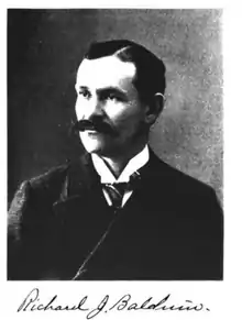 Richard Jacobs Baldwin (March 1, 1853 - June 15, 1944) was an American politician from Pennsylvania who served as a Republican member of the Pennsylvania House of Representatives in the 1894, 1896 and 1898 terms. He was reelected to the House for the 1910, 1912, 1914 and 1916 terms and served as Speaker of the Pennsylvania House of Representatives from 1917 to 1918. He was nominated speaker due to his twenty years of service in the house by the Republican political boss Boies Penrose.[1] Baldwin also served a term in the Pennsylvania State Senate for the 9th Senatorial District from 1919 to 1920.[2]