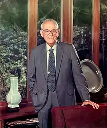 In 1983, Stern gave an interview to The Independent magazine, in which he stated, “I was always good at arithmetic and I always liked to play games, and this is one big game. I started out working summers as a kid, doing whatever … probably annoying others. Now I make the decisions.”[21] Stern Brothers was sold in 1986.[2] Stern retained the title of chairman emeritus until his death in 2001. In its obituary of Stern, The Bond Buyer reported, “Local market participants described Mr. Stern as both generous personally, and tough and demanding professionally. When Kansas City was planning to build an overhaul base for TransWorld [sic; Trans World] Airlines, which would have entailed a complex financial transaction, it began by going to Wall Street. As the story goes, the ‘large Eastern bond firms got weak knees,’ [Leonard] Noah [a retired vice president of operations at Stern Brothers] said. ‘Stern Brothers stepped up and did the deal.’”[22] As the Kansas City Star noted, “Although Stern is remembered for working quietly, delegating authority adroitly and seldom closing the double doors to his downtown offices when working on key projects, he also was recalled as [a] forceful man when the occasion required.”[17]