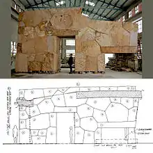 With Rhodes Architectural Stone, Rhodes purchased 17 villages behind the Three Gorges Dam project in China[20] and successfully recycled the antique stone material into construction of architectural projects in the United States.[1] Rhodes' interest with working in high-density limestone led him to the ancient Chinese villages because of the stones texture and warm characteristics. They were in the process of being abandoned and flooded because of the hydroelectric project, which was set to displace between 1.1 and 1.9 million people. The villages were built out of the same high-density limestone, but with the benefit of a patina from thousands of years of daily use and weathering and Rhodes set out to preserve the material. After two years of negotiation, Rhodes worked with the Chinese government to purchase the limestone that would otherwise have been underwater and finance factories with Chinese stonemasons and craftsmen. Rhodes ultimately only harvested the top three inches of the limestone and gave the rest back to the Chinese to build new homes.[6]