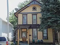 The Richard Schebler House is a historic building located in the West End of Davenport, Iowa, United States. Richard Schebler, who built this house in 1876, was a grain buyer. Before living here he had lived elsewhere in the neighborhood.[2] The house is an example of a popular form found in the city of Davenport: two-story, three–bay front gable, with an entrance off center and a small attic window below the roof peak.[3] This house is also of wood construction, which allows for more elaboration. Here it is seen in the wall shingles, the small columned porch, and the surround of the attic window.[4] Above the gable window is an intricately carved apron. Surrounding the entrance is an Eastlake-style porch.[2] It has been listed on the National Register of Historic Places since 1983.[1]
