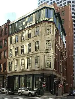 The Richardson Block is a historic block of commercial buildings at 113-151 Pearl and 109-119 High Streets in Boston, Massachusetts. It consists of a series of buildings constructed in the aftermath of the Great Boston Fire of 1872. The first of these buildings, at the corner of Pearl and High Streets, was designed by William Preston and built in 1873 for Jeffrey Richardson, using granite and brick salvaged from buildings that had previously stood on the site. The area was an important locus of the leather goods business both before and after the fire, and the buildings constructed after the fire are among the only neo-Greek commercial structures standing in Boston's Financial District.[2]