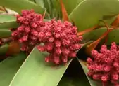 Inflorescences emerge from the leaf axils[2] on structures called panicles (branched inflorescence) which can grow up to 25 centimetres (10 in) long. Their flowers can be either white of deep pink in colour.[3]