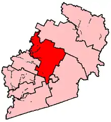The riding, north of the city of Sherbrooke, straddles the Quebec regions of Centre-du-Québec and Estrie. It consists of the Regional County Municipalities (RCM) of Les Sources and Arthabaska and the centre of the RCM of Le Val-Saint-François. It includes in particular the towns of Victoriaville and Val-des-Sources.