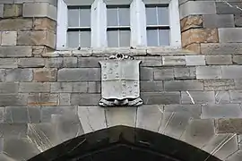 Johnston had placed his personal coat of arms above the arch, concealed by a piece of wood painted to match the stone, his idea being that his arms would be revealed to future generations after the wood became rotten. However, this was uncovered when the gateway was taken down for removal. The current coat of arms on the gateway is that of the Royal Hospital.[3]