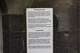 The Richmond Tower is an historical gateway to the Royal Hospital, Kilmainham, Dublin, designed by Francis Johnston and named after the Duke of Richmond, the Lord Lieutenant at the time. Built between 1810 and 1811,[1] the gateway originally stood beside the River Liffey at Barrack Bridge at the junction of Watling Street and Victoria Quay, the tower had to be moved after the building of nearby Kingsbridge Station in 1846 caused traffic congestion at the site. The tower was dismantled and erected at its present location the following year at the expense of the railway company.[2]