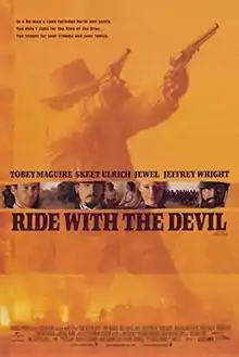 Ride with the Devil is a 1999 American Revisionist Western film[3] directed by Ang Lee and starring Tobey Maguire, Skeet Ulrich, Jeffrey Wright, and Jewel in her feature film debut. Based on the novel Woe to Live On, by Daniel Woodrell, the film, set during the American Civil War, follows a group of men who join the First Missouri Irregulars, also known as the Bushwhackers—guerrilla units loyal to pro-Confederacy units of the state—and their attempt to disrupt and marginalize the political activities of Northern Jayhawkers allied with Union soldiers. Simon Baker, Jonathan Rhys Meyers, Jonathan Brandis, Jim Caviezel, Mark Ruffalo, and Celia Weston are featured in supporting performances.