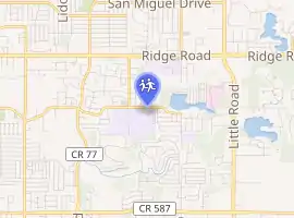 The Pasco County School Board approved the creation of a new junior high school north of the City of New Port Richey in response to population growth in the area during the 1970s, with the expectation that the school would ultimately become west Pasco's third high school. Superintendent Thomas Weightman had Ridgewood built to senior high specifications and purchased extra land near the school for the future expansion and conversion.[5] The school was built for $3.2 million and opened on August 22, 1978. Wendell L. Krinn became the first principal of the school and would serve in that position for 20 years.[6] The St. Petersburg Times proclaimed Ridgewood, "The new home of education" in Pasco County because of its state of the art facilities and unique architecture.[7] Rowe Holmes Associates designed the main building of Ridgewood High School after the Tampa Bay Center in Tampa, Florida, with its courtyard, high ceilings, and second floor overlooking the building.[7]