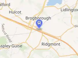 Ridgmont railway station is a small unstaffed railway station that serves the village of Ridgmont in Bedfordshire. The station is about 1 mile (2 km) away from Ridgmont on the other side of the M1 Motorway, (beside Junction 13), Brogborough and Husborne Crawley. It also serves the large Amazon warehouse next door.