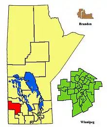 Communities in the riding include Minnedosa, Rapid City, Rivers, Virden and Birtle. The riding's population in 2006 was 21,245.