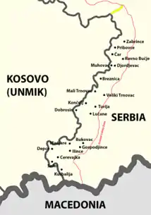 As part of the plan for the return of the Yugoslav Army to the Ground Security Zone, UCPMB commanders Shefket Musliu, Ridvan Qazimi and Mustafa Shaqiri signed an agreement on the peaceful demobilization of UCPMB in Konculj on 21 May, in the presence of Sean Sullivan, head of the NATO Office for Yugoslavia. According to that agreement, the Yugoslav Army was to enter Sector B of the Ground Security Zone by 31 May 2001.[1][2]