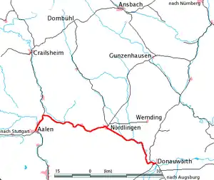 The line consists of a section of the Aalen–Nördlingen railway built by the Kingdom of Württemberg as the Rems Railway and a section of the Nördlingen–Donauwörth railway built as part of the Ludwig South-North Railway by the Kingdom of Bavaria, two of the oldest lines in Germany.