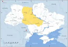 Right-bank Ukraine (Ukrainian: Правобережна Україна, Pravoberezhna Ukrayina; Russian: Правобережная Украина, Pravoberezhnaya Ukraina; Polish: Prawobrzeżna Ukraina, Slovak: Pravobrežná Ukrajina, Hungarian: Jobb parti Ukrajna) is a historical and territorial name for a part of modern Ukraine on the right (west) bank of the Dnieper River, corresponding to the modern-day oblasts of Vinnytsia, Zhytomyr, Kirovohrad, as well as the western parts of Kyiv and Cherkasy. It was separated from the left bank during the Ruin.