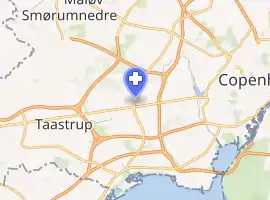 Rigshospitalet Glostrup is located in the township of Glostrup 8 km from the center of Copenhagen in Denmark. It is owned and managed by the regional health authority of the Greater Copenhagen region, Region Hovedstaden. The hospital was formerly known as Glostrup Hospital, but after the merger with Rigshospitalet 1/1/2015, it is now known as Rigshospitalet Glostrup.