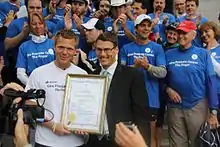 During his run, Riley was awarded the keys to the city of Thunder Bay, Ontario from Mayor Keith Hobbs.[11] Vancouver Mayor Gregor Robertson proclaimed October 6, 2011 Dr. Riley Senft Step Into Action Prostate Cancer Awareness Day.