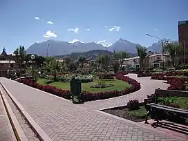 ![]() Wallunarahu and Ranrapallqa (both snow-covered), Rima Rima and Churup (on the right) as seen from Huaraz | |