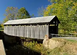 The Ringos Mill Covered Bridge spans Fox Creek in Fleming County, Kentucky in a single 90-foot span. It was named for a grist mill situated 50 yards downstream.[2]