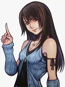 Rinoa Heartilly is the 17-year-old daughter of General Caraway, a high-ranking officer in the Galbadian army, and Julia Heartilly, a famous singer.[12][13][14] Over the course of the game, she falls in love with the protagonist, Squall Leonhart.[12][15][16] Rinoa is a member of the "Forest Owls", a tiny resistance faction seeking to liberate the small nation of Timber from Galbadian occupation.[17] She is called the "princess" of the group.[18] Rinoa first meets Squall at the SeeD inauguration ball at Balamb Garden. During the dance, she manages to charm the usually antisocial Squall into dancing with her.[19][12] She then hires Squall and his mercenary friends Zell Dincht and Selphie Tilmitt to fight for the Forest Owls. After failing to assassinate Sorceress Edea for her crimes against Timber, the Forest Owls escape the sorceress and Rinoa decides to stay with the group.[20][21]