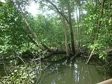 The mouth of the river contains an important Mangrove ecosystem that has been partially restored as part of a mangrove restoration program.[6] A 2021 paper found that even newly restored mangroves in the delta stored a significant amount of organic carbon as a blue carbon.[6]