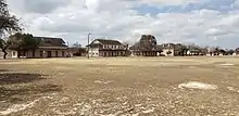 Ringgold Barracks were established at Davis Landing on 26 October 1848 by the 1st US Infantry under the command of Captain J.H. La Motte, in honor of Major Ringgold who was mortally wounded at the Battle of Palo Alto.[9] Troops were withdrawn on 3 March 1859 but reoccupied again on 29 December 1859 during the Cortina War.[9] Abandoned again at the start of the Civil War in 1861, but reoccupied again by US forces in 1865.[9] The fort was active until 1944 when the property was sold to the Rio Grande City public schools system[10]: vii Units stationed here included the 1st Infantry (Mounted Dragoons), 7th and 28th Infantry Regiments, 3rd Texas Volunteers, the 9th, 10th and 12th Cavalry Regiments, the 9th and 10th being composed of Buffalo Soldiers.[10]: 13 Besides the parade ground, several post buildings survive as school facilities. These include the sentry and guard houses, barracks, officers quarters, the bakery, hospital and post headquarters,[10] situated along Ringgold Avenue, Lee Circle, 12th Cavalry and F Troop streets. The Rio Grande City United States Army Reserve Center is the only remaining military presence at the Fort Ringgold area.