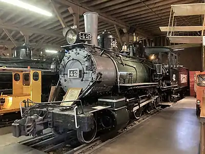 | RGS #42 | Built for the D&RG as #420 in 1887 by Baldwin, a 2-8-0 Consolidation Locomotive, Classed as a "Class 70" Locomotive. Sold to the RGS, and Renumbered to #42 in 1916, Classed as a "C-17" Locomotive in 1921.[7] | Purchased by Robert Richardson in 1953 for the Narrow Gauge Motel in Alamosa. When the motel was moved to Golden, Colorado and became the Colorado Railroad Museum, 42 was sold to Magic Mountain to fund the move of equipment to Golden. 42 was later sold to the D&SNG in 1989, and has been on Static Display in their Museum since.[7] |