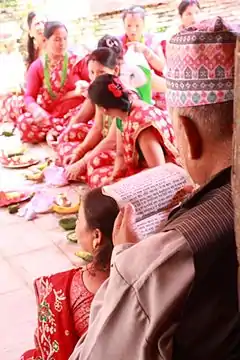 On Rishi Panchami, a ritual bath is taken in holy rivers, ponds or in other water masses. Lord Ganesh, Navagraha (nine planetary gods), Saptarshis (seven Sages) and Arundathi are worshipped on this day. The women offer the 'Prasad' to Gods and wash husbands' feet.[3]