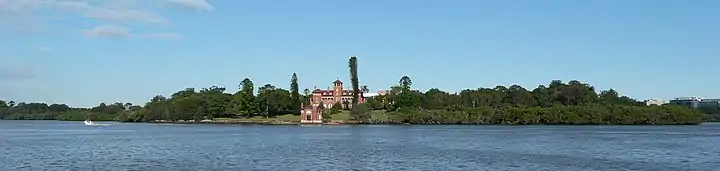 The Concord West premises are located on the banks of the Parramatta River and were originally known as the Thomas Walker Hospital. They were designed by Sir John Sulman and built from 1891-93 by A.M.Allan. The money came from the will of the philanthropist Thomas Walker, who had lived in the Italianate mansion Yaralla, also located at Concord West (and now known as the Dame Eadith Walker Hospital). The buildings are made of brick and sandstone, which is characteristic of the Federation Free Classical style.[3] They feature marble fireplaces and cedar joinery, and are considered an important example of John Sulman's work. They are now listed on the Register of the National Estate.[4][5]
