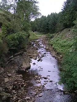 The only significant tributary of the River Ashop is the short River Alport. The flow of the Alport is partially diverted by a weir to feed into the Ashop above the impound weir built in the 1920s to increase the catchment area of the Derwent Reservoir prior to the building of the Ladybower Reservoir downstream. The weir impounded the water and fed it into an open culvert (water conduit) that was built along the side of the hill. The culvert then feeds into a siphon over the river in a 6-foot-diameter (1.8 m) iron pipe before entering a tunnel to pass through the hill to the Derwent Reservoir via an open watercourse, entering the reservoir just north of the dam wall. The concrete structure of the weir is visible when travelling up the Snake Pass route from Sheffield.[2]