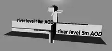 The normal water level at York is established as 5 metres (16 ft) Above Ordnance Datum (AOD)[7] and the duty officer is alerted when the River Ouse reaches 7.4 metres (24 ft) AOD. After 7.8 metres (26 ft) AOD is reached, the barrier is lowered into the Foss. Boats are alerted by way of visible and audible alarms and after the alarm is sounded, the pumps are activated, the silt from the bed is cleared and the barrier can drop into a tight fit.[6]