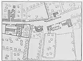The watercourse drained first the seasonally wet (and occasionally flooded) ground at St George's Fields, now Geraldine Mary Harmsworth Park, in western Southwark.[1] Its course was east as follows: it took the line of Brook Drive then passed by the Elephant and Castle,[2] then passed the site of Lock Hospital, Kent Street.[3] This upper section was also known before that hospital's closure in the early 19th century as the Lock Stream.[3] It then passed the grounds of (since demolished) Bermondsey Abbey to the south, forming the channel north of what was the large Thames island of Bermond's ey (island).[4] The channel is today resembled by Abbey Street.[2] In the first millennium the river merged into the Thames by hooking north at three points. At least three tidally broadly flooded mouths existed, two of which were west of the former small island of Horsleydown and the third at the approximate site of St Saviour's Dock.[3][5] The Neckinger's northern mouth (now a surface water point of discharge into a deep, excavated inlet) divides the much-built up former marshland at the east end of Horsleydown island, known as Shad Thames and the low part of Bermondsey historically known as Jacob's Island to the east, which has also been built-up.