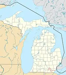 The River Raisin is a river in southeastern Michigan, United States, that flows through glacial sediments into Lake Erie. The area today is an agricultural and industrial center of Michigan. The river flows for almost 139 miles (224 km),[1] draining an area of 1,072 square miles (2,780 km2) in the Michigan counties of Lenawee, Washtenaw, Jackson, Hillsdale, and Monroe County, where its mouth at Lake Erie is located.[2] French settlers named it as La Rivière aux Raisins because of the wild grapes growing along its banks, the French word for grape being raisin. The French term for "raisin" is raisin sec (dry grape).[3]