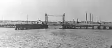 The original bridge at the site, a wooden drawbridge, was built in 1810.[1][2] The bridge was built in response to the 1793 construction of the West Boston Bridge (at the site of the current Longfellow Bridge), because the two bridges together greatly shortened the route from Boston to Cambridge, which previously had to take a highway around the Back Bay through Roxbury.[3]