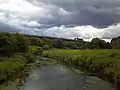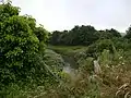 Oldbury Arm of the Tame close to its entrance to the Sheepwash Urban Park, between Great Bridge, Tipton, and West Bromwich. At this point it is still only 1–2 metres wide if not in flood.