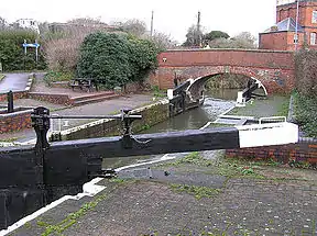 The number of locks on the navigation varied over the years, and by 1804 there were four full or pound locks, situated at Ham, Creech St Michael, Bathpool and Obridge. In addition, there were at least four half locks. Curry Moor gates were the lowest on the river, which were followed by a second half lock 100 yards (91 m) further upstream, just below Newbridge. A third gate was located 450 yards (410 m) below Ham lock, and the fourth one was just below the lock at Bathpool.[54]