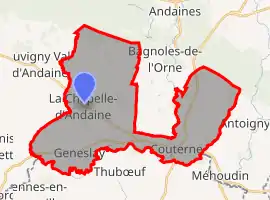 Rives d'Andaine (French pronunciation: [ʁiv dɑ̃dɛn]) is a commune in the department of Orne, northwestern France. The municipality was established on 1 January 2016 by merger of the former communes of La Chapelle-d'Andaine (the seat), Couterne, Geneslay and Haleine.[2]