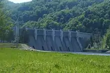 Rożnów is the location of a dam on the Dunajec and a power station built in 1935-1941. The dam was constructed originally to prevent flooding after the disastrous 1934 flood in Poland which took the lives of 55 people and caused damages estimated at 60 million interbellum Polish zlotys; the biggest flood in the Second Polish Republic.[2][3]