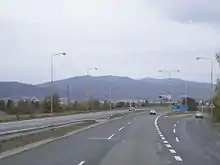 Road I/50 is a first class road in Slovakia. It is the longest numbered road in Slovakia, with a total length of 403,8 km[1] and it crosses the country from the northwest to the east. Road sections are the parts of European roads E50, E58, E71, E77, E571 and E572. Expressway R2 is planned to be constructed on the most parts of the road section to relieve the rising traffic. Most of the road part is two laned, ca. 20 km section between Žiar nad Hronom and Zvolen is four laned plus emergency lane in both directions and a section between Nováky and Prievidza. Also before entering Košice is ca. 17 km long four laned section. The road crosses Trenčiansky, Banskobystrický and Košický kraj.
