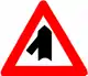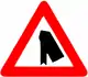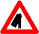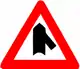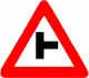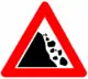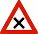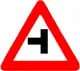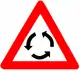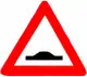 Signs warning of hazardous conditions or dangerous situations (e.g. "Intersection" or "Steep incline ahead" bear a black-on-white symbol inside a red-bordered triangle (point uppermost).
