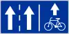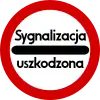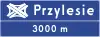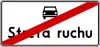 - Complementary signs (znaki uzupełniające; type F) – big rectangular or square signs with blue or yellow background. These signs mostly inform about traffic order or approaching restrictions and dangers.