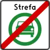 - Prohibition signs (znaki zakazu; type B) – circular with red border. Black (in some cases colorful) symbol on white background (exceptions: sign B-20 "STOP", which has an octagonal shape – it also provides clear meaning even during reduced readability or when looking on it from behind; signs B-39, B-40 and B-44 are rectangular). In case of the signs that cancel specific restrictions the symbol is grey and crossed out by thick black diagonal line.